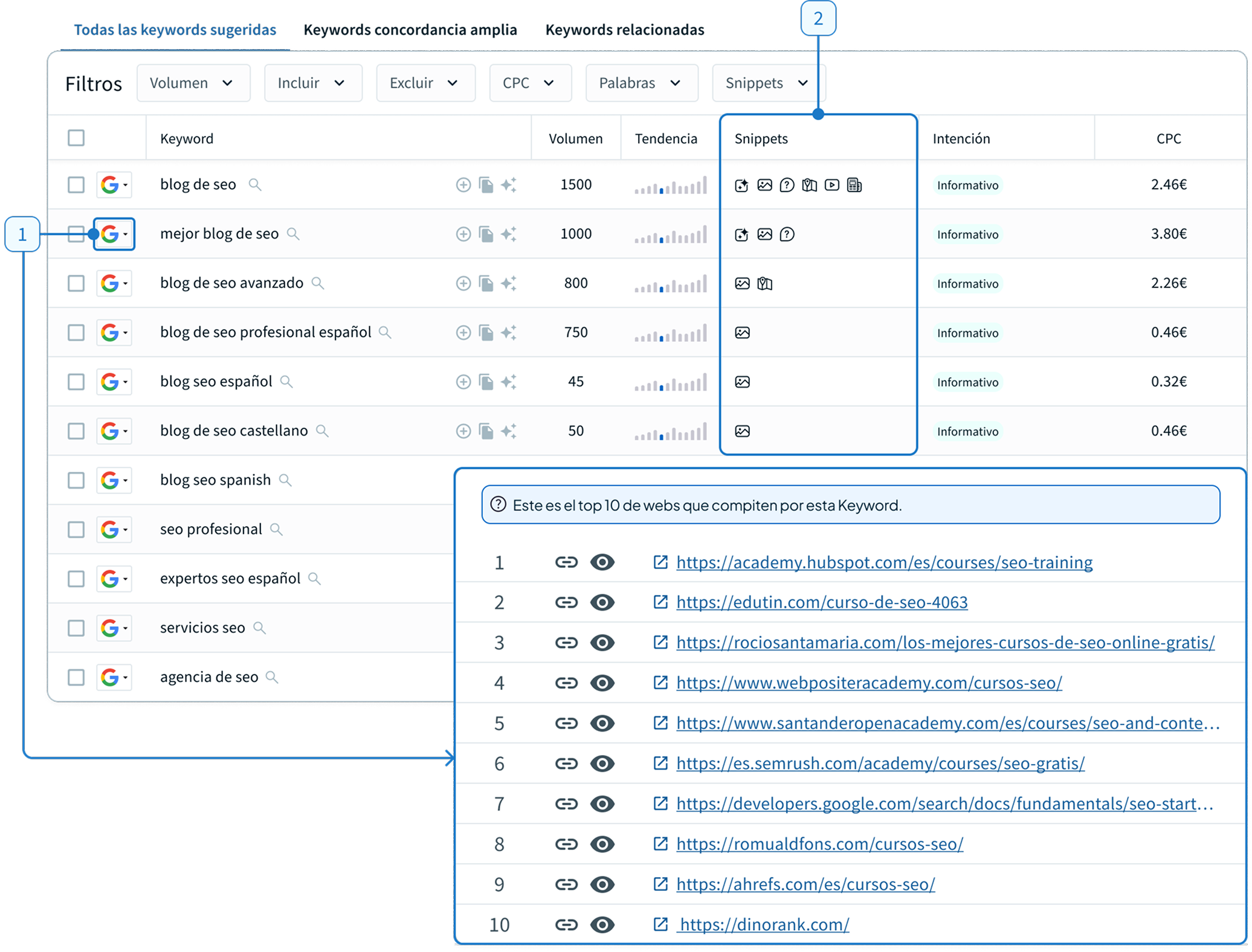 Più parole chiave (molte di più), database proprio, parole chiave alternative con AI, ricerca di parole chiave con la possibilità di filtrare ciò che appare nelle SERP... (escludendo le panoramiche AI o vedendo solo le parole chiave con il local pack, ad esempio).